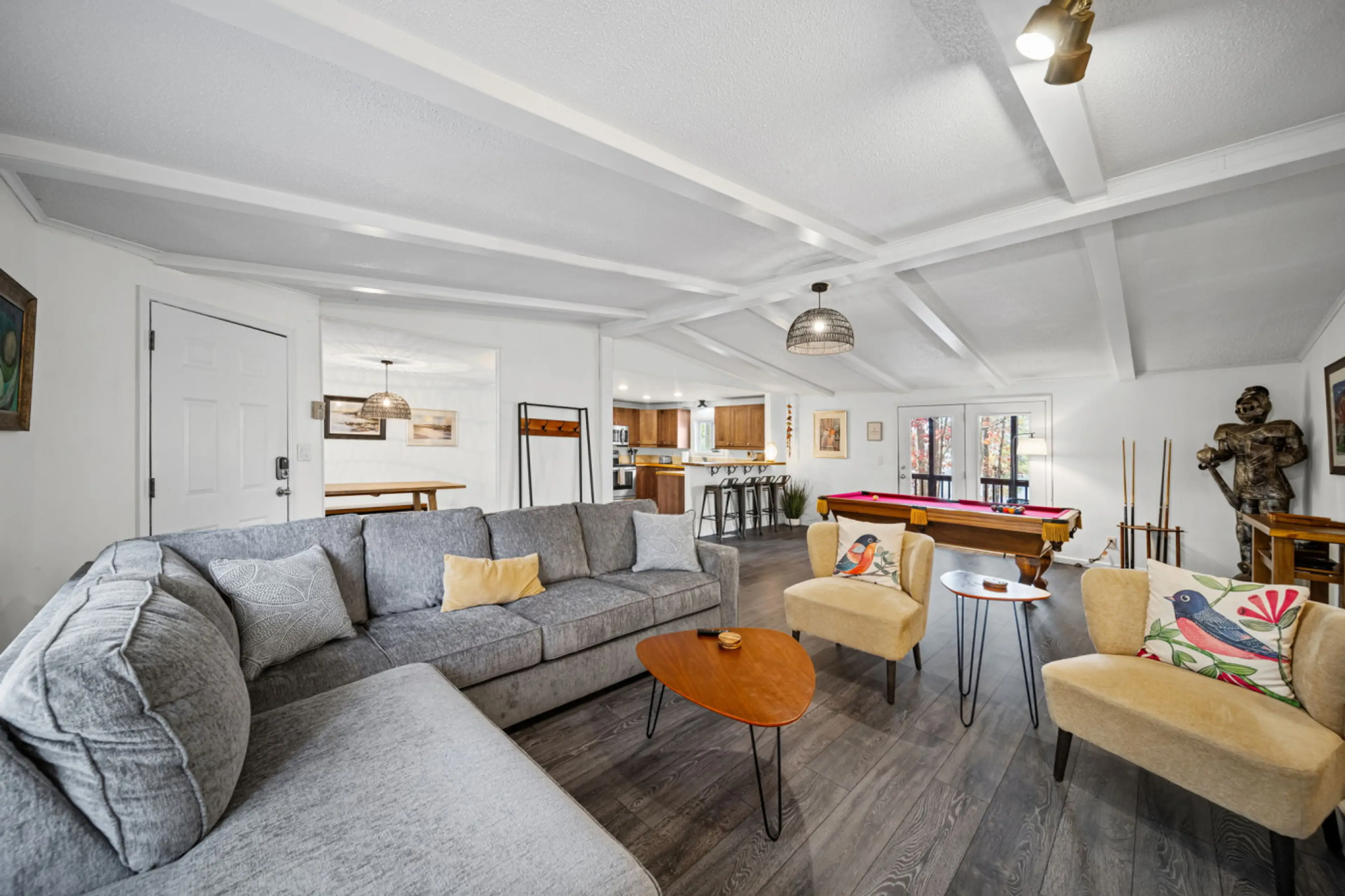 Property needs a refresh, general maintenance and upkeep. Ants all over the kitchen, broken blinds, holes in the wall where a curtain rod once hung. Refrigerator was dirty, vents are rusty, paint is peeling from the ceiling, and the main bathroom has what looks like a tub and faucet from the 1970s. The outside of the house needs to be power washed to get rid of the hundreds of spiders that then migrate inside. The dock has boards that are severely warped and pulling up. We will not be returning to this property as the price point is way too high for what you get.